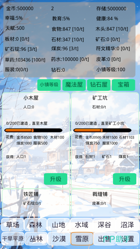创新整合区域经济系统,地图划分为草原、沼泽、平原、丘陵四类地形,每类适配不同作物与建筑:沼泽宜种莲藕、建造渔场;平原适合小麦规模化种植与粮仓集群;丘陵则侧重果树梯田与观景塔。引入幸福度、资源储备量、人口承载力等量化指标,引导玩家权衡短期收益与长期发展。农作物销售所得金币可直接用于道路铺设、学校建设等小镇公共项目,形成闭环式成长路径。