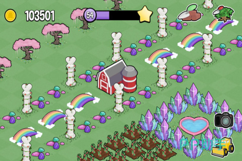 以Q版小怪物为主角展开单机向农场养成。初始仅有一小块贫瘠土地,通过种植草莓、西瓜等基础作物获取金币与经验,逐步扩大耕作面积并解锁高级作物如彩虹椒、钻石莓。支持高度个性化装饰:可铺设鹅卵石小径、摆放风车与秋千、种植观赏花卉,打造专属视觉主题农场。所有作物均标注多语言名称(含中文、英文、日文、韩文),兼顾教育性与国际化体验。