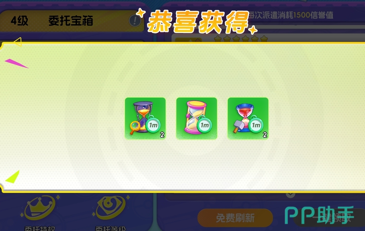 完成派遣任务后,玩家们可一键领取所有派遣任务的奖励,并且还能提升自己的委托等级,令自己能获得更丰厚的委托宝箱。委托宝箱是委托板为玩家们送来的福利功能,每次领取都能得到数量不等的加速道具,可用于加速建筑物的升级、研究加速等,且委托等级越高,委托宝箱里所能开出的加速道具也会越多。委托宝箱每天能领取无数次,但每次领取后,下一个宝箱的生成时间会比前一个宝箱更久,每日零点会进行重置。
