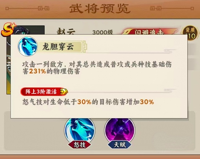 赵云本身的闪避能力极强,赵云本身的闪避能力极强。在弄寝室拉网后可激活技能”龙胆穿云“,对敌方可开启整列攻击,对敌方总共造成普攻或者是兵种技能基础伤害231%的物理伤害,而对于血量低于30%的敌方目标,还可额外增加30%的物理伤害东西,而他的这一特性让他在残血收割时拥有着更加出众的表现。
