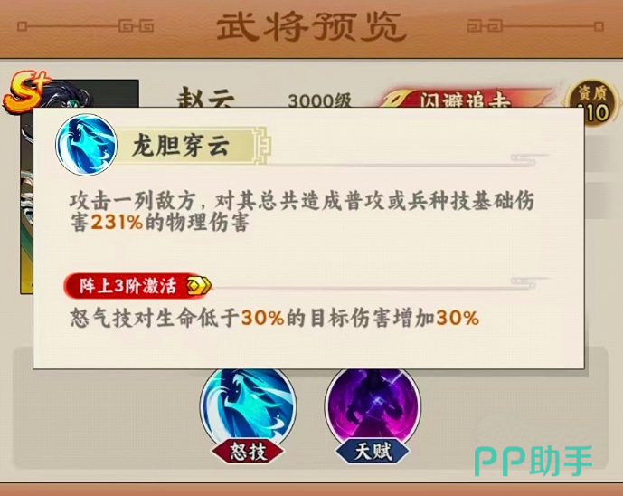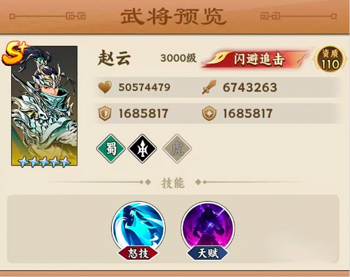 再来说一下赵云的天赋技能,大王等级提升至五星时,可直接激活天赋技能值,等级提升至五星后,可直接激活天赋技能值。每一个回合受到敌方的主动攻击,可以开启追击对手模式,直接可对敌方造成80%的物理伤害攻击数值,而达到九星后则可实现闪避追加,每次在躲避敌方攻击时,都有30%的几率激活闪避功能;升星之英杰一星,每次活动后可获得两层”七出“效果,不仅可以提高闪避速度,而且还能达到一次高效输出模式。