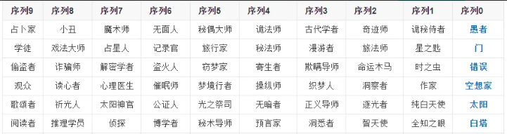 序列9阅读者:作为初始序列仅为记忆力和阅读能力的提升,可使用部分比较基础的仪式魔法,需要通过大量书籍阅读累积、知识储备才能向下一序列进阶。