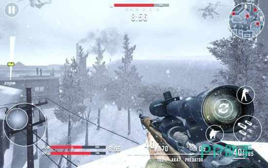 以冰封荒原为背景设定,地图涵盖雪地、冻湖、废弃哨站等极端环境。枪械系统支持倍镜切换、弹道补偿、风速校准等拟真机制,适配不同距离与气象条件下的狙杀需求。采用双镜头视角(主视角+瞄准镜特写)强化操作代入感;生涯模式内置多阶段成就体系,包含隐蔽击杀数、首枪命中率、极限距离狙杀等可量化挑战目标。