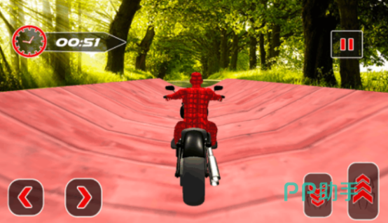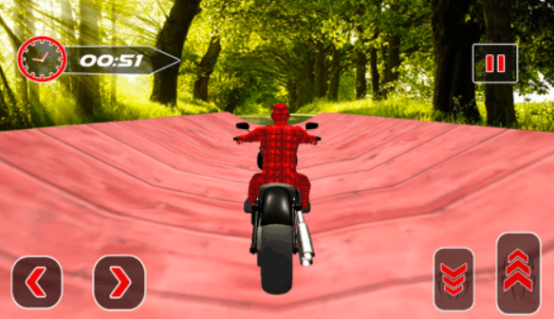 这款化身为蜘蛛侠,能够展开自行车比赛的手游,不仅给大家带来非常真实的驾驶体验,还有着与众不同的赛道,无论你是置身于森林或者是在上空的环境,都要凭借着驾驶自行车所具备的绝技。才能够让自己一直的在跑道当中,完成相应的任务挑战,有简单的操作方法,可以通过点击左右按键来控制方向,以及刹车和加速的按键控制速度。