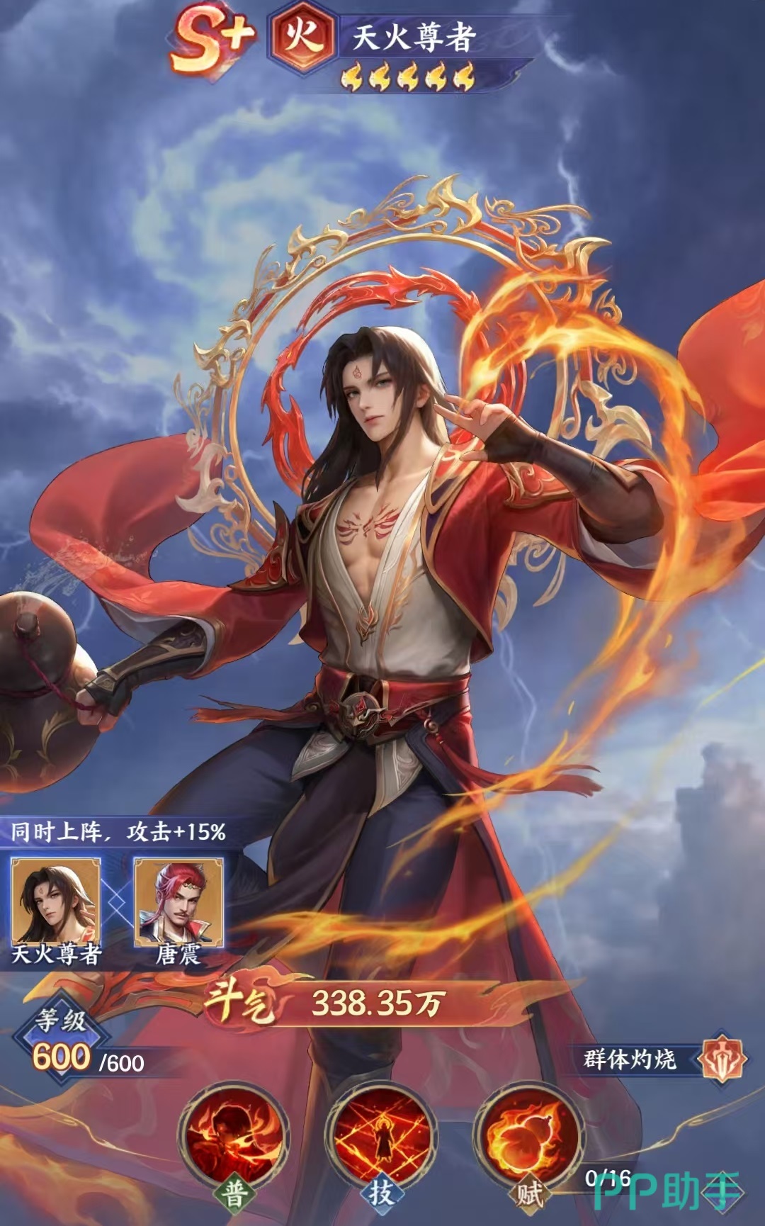在《斗破苍穹》手游中,天火尊者定位为S+级火系核心战力,其设定高度还原原著中斗尊境界强者的身份。作为萧炎中期关键盟友,他在游戏内不仅具备高战略价值,更以独树一帜的“燃烧机制”构建起整套阵容体系的核心逻辑。
