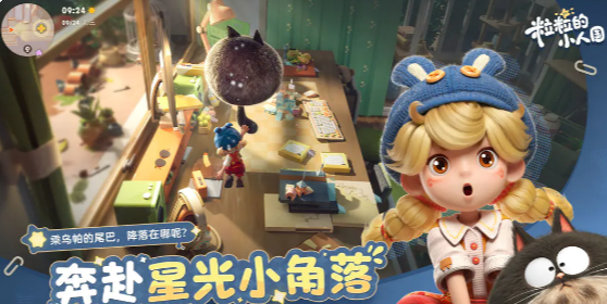 进入游戏后,玩家将置身于一个绘本风格的微缩世界:眼镜盒化作蓬松柔软的休憩沙发,空牛奶盒蜕变为暖光萦绕的树屋小居。整体美术采用高饱和但低刺激的配色体系,所有线条均为手绘质感,细节刻画细腻柔和,营造出如童话书页翻动般的视觉呼吸感,带来真正意义上的沉浸式情绪疗愈。