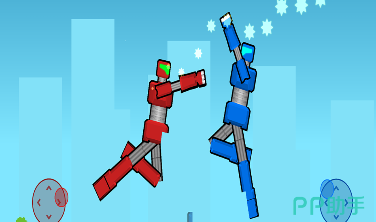 2D格斗框架下融入3D机甲建模,角色动画帧率达60FPS,连招系统支持27种基础指令组合。红蓝双色机甲阵营设定对应不同战斗逻辑:红色系侧重爆发输出,蓝色系专精防御反制。训练模式内置AI陪练系统,可针对微操短板进行专项强化训练。