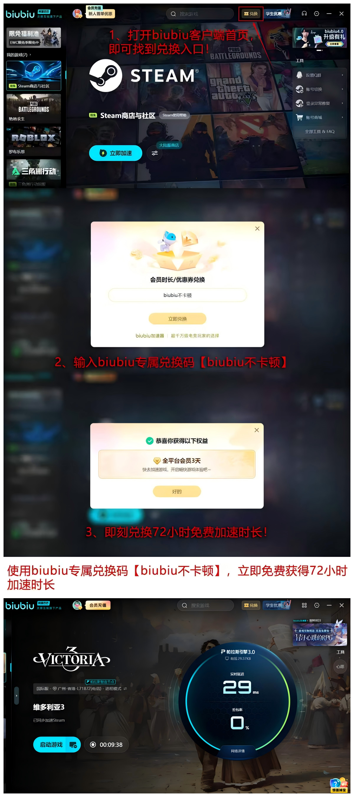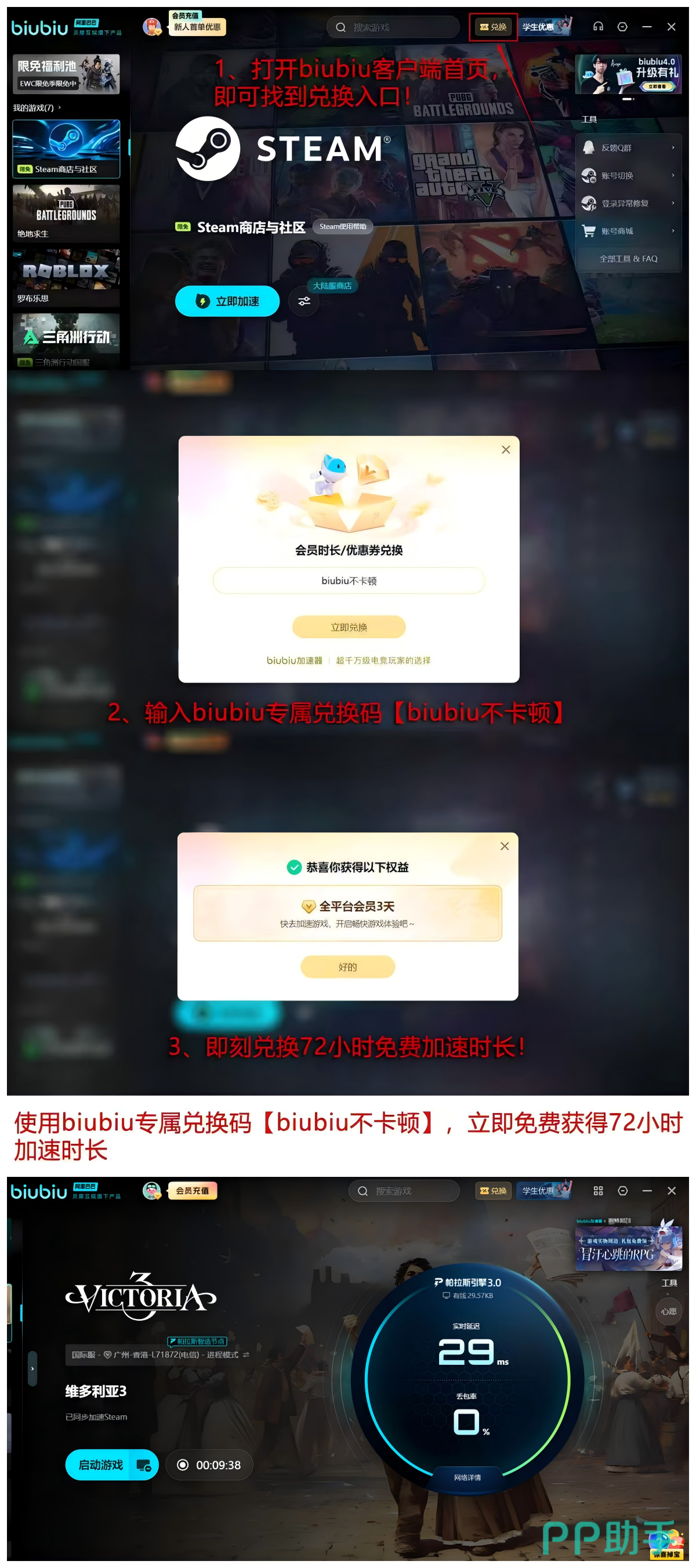 为便于用户体验效果,当前开放限时兑换口令:输入【biubiu不卡顿】可获72小时高级服务权限,新注册用户叠加首赠24小时,总计可用时长达96小时。该周期足以完成游戏本体更新、创意工坊模组筛选部署及多轮性能压力测试。
