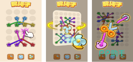 以真实绳结结构为蓝本的益智解谜游戏,还原蝴蝶结、死结、活扣等数十种常见结法。玩家需借助剪刀、胶带、放大镜三类辅助工具,在二维平面中推理松解路径。关卡设计遵循认知心理学原理,前期侧重空间观察,后期融入多步骤预判,兼具教育意义与解压功效,深受学生群体与办公族欢迎。