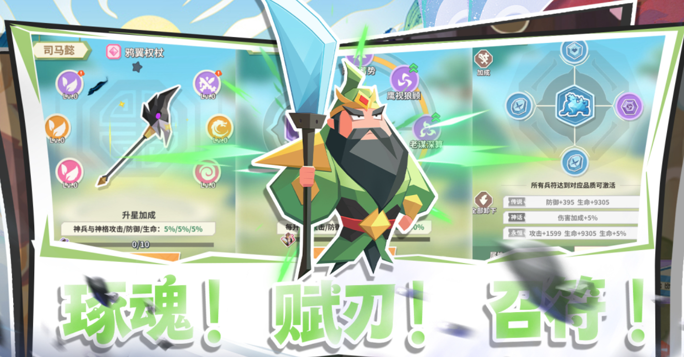 三国题材卡牌放置类手游,画风抽象诙谐,人物造型极具辨识度。玩家自由布阵,组合武将羁绊,触发连锁技与群体爆发。原创架空剧情增强代入感,搭配天赋树、装备锻造与多维度养成体系,辅以高清战斗特效与角色语音,打造轻松又有深度的策略体验。