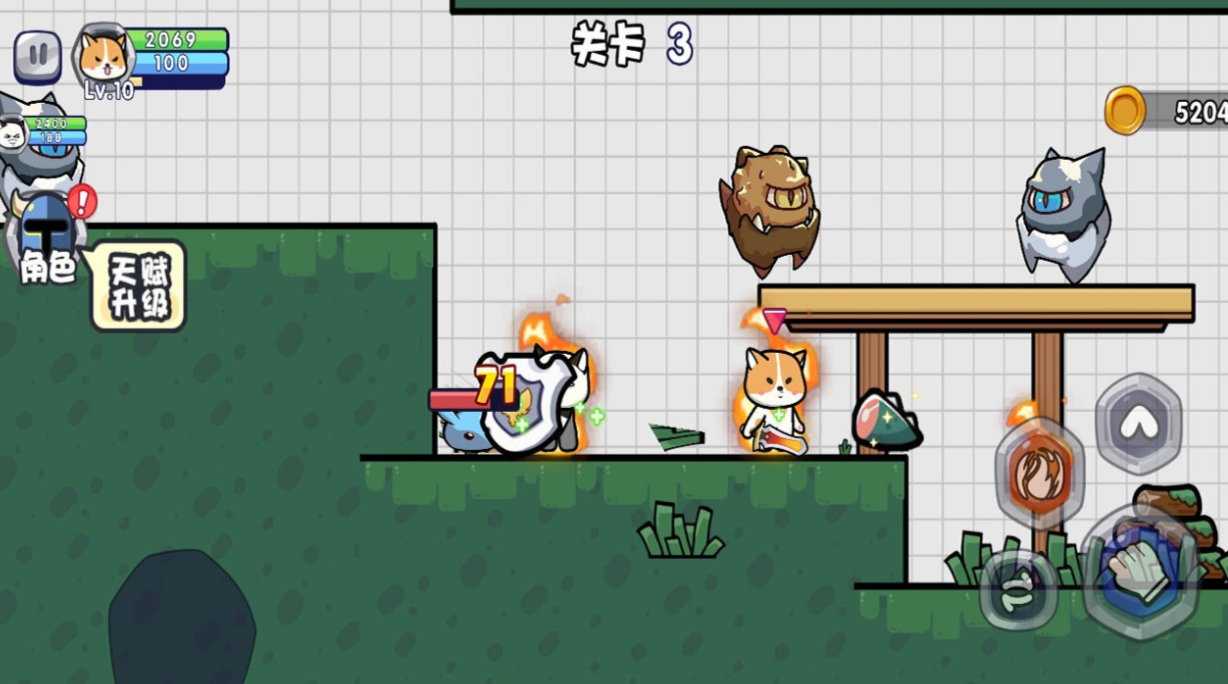 一款以猫咪为主角的横版ARPG闯关作品。角色形象可爱灵动,手持剑、锤、弓等多种冷兵器,通过天赋系统逐级解锁主动技能与被动增益。敌人设计亦以拟人化动物为主,战斗节奏轻快流畅,支持一键切换近战/远程/防御模式,兼顾操作便捷性与策略延展性。