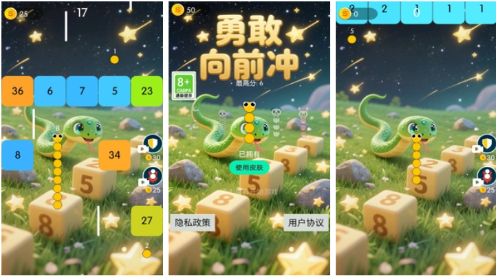 一款重构经典贪吃蛇玩法的创意休闲游戏。玩家控制不断延伸的蛇身收集黄色能量点,再利用长度优势撞击数字方块实现清除。规则简洁但策略性强,考验预判能力与空间规划意识,画面色彩明快,动画反馈及时,适合碎片时间放松减压。