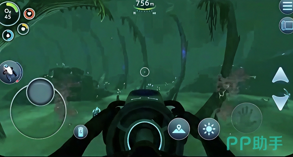 移动端运行时,玩家需持续关注两项核心状态值:生命值与氧气值(即原文所指“体力”)。维持二者在安全阈值以上,是实现长距离深潜的前提。系统内置数字指南针功能,支持手动标记已探索坐标、设置路径锚点,并结合海底地形起伏(如热泉喷口、沉船残骸、岩层断崖等)动态规划行进路线,有效规避迷失风险及高威胁生物集群区域。该导航机制为游戏基础生存系统的重要组成部分,不可替代。