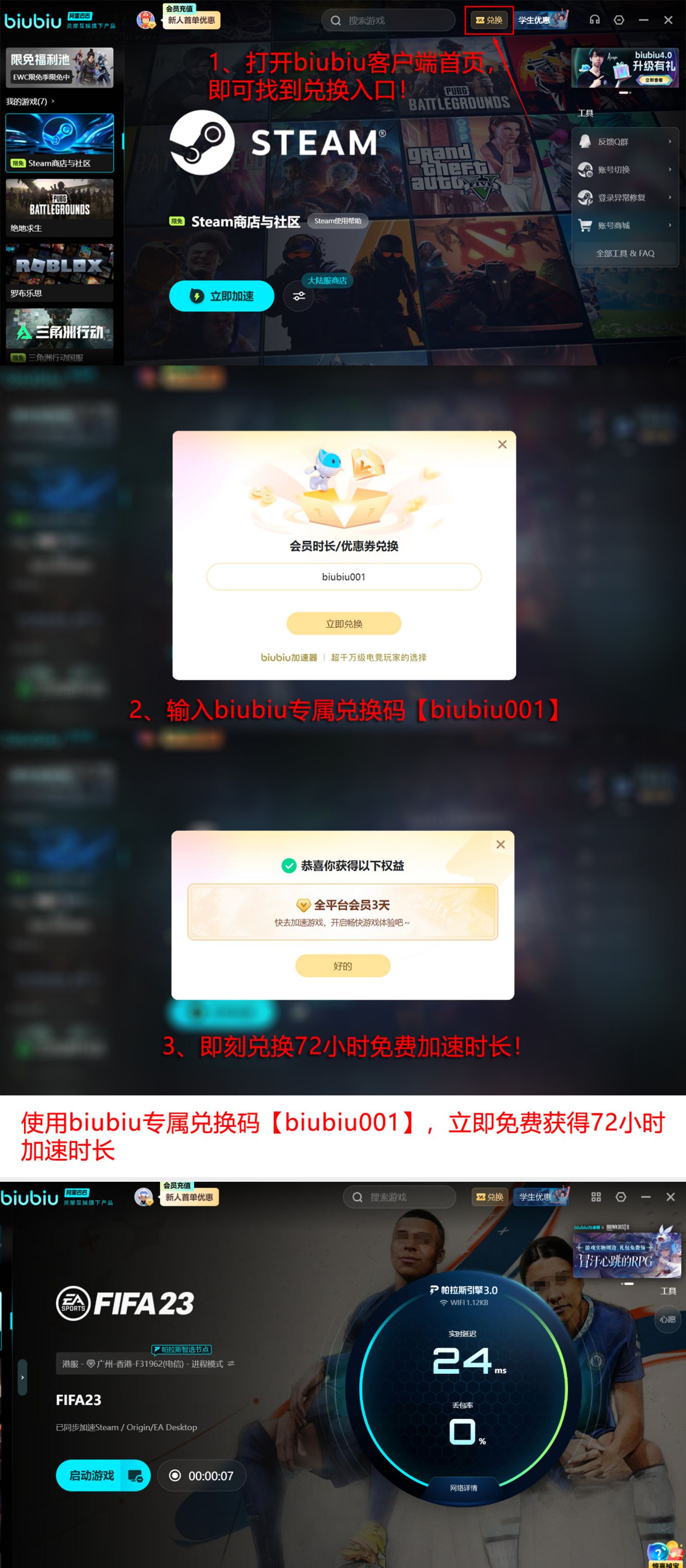 当前版本已集成帕拉斯引擎3.0,相较2.0版本在路由调度效率、协议兼容性及弱网适应能力方面实现全面提升。除专注网络加速外,Biubiu亦整合游戏分发生态,内置超万款正版授权游戏资源,支持一键搜索与快速启动。现面向新用户推出限时福利:注册即赠24小时免费加速时长;另开放专属兑换码【biubiu001】,所有用户(含新老)今日激活可额外获得三天免费加速权限,新用户可叠加使用,总计达96小时。