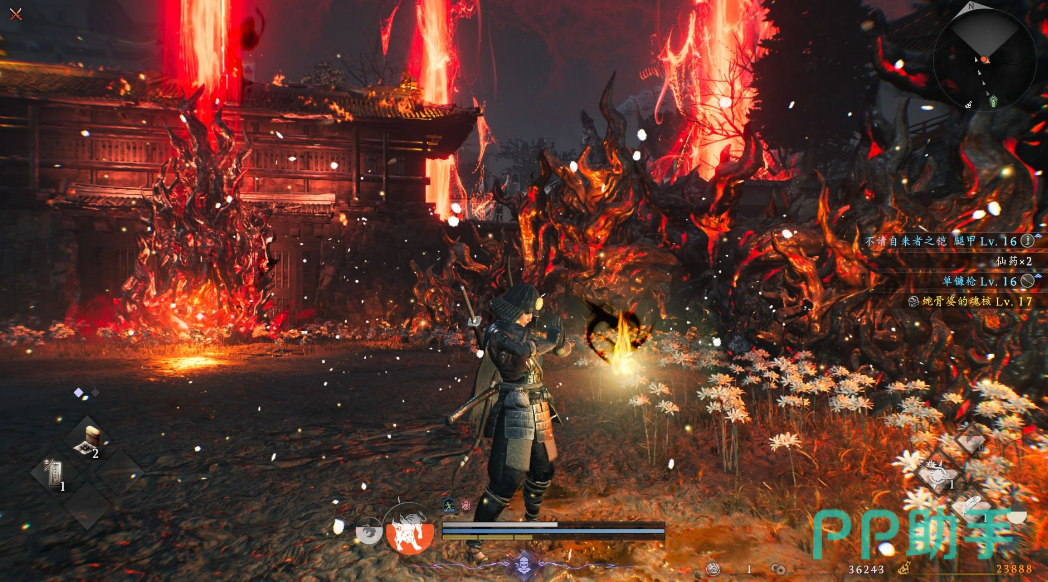 山县昌景之战是中期重要剧情节点,需熟练运用闪避帧管理与守护灵变身时机。其红光范围技可通过“转心”成功反制,当Boss血量低于20%时将进入无敌爆发状态,此时应优先规避而非强攻;饿鬼支线发生于森林民居区域,玩家需定位已异化为饿鬼的太郎,集中攻击其头部发光弱点完成处决,方可交付委托。