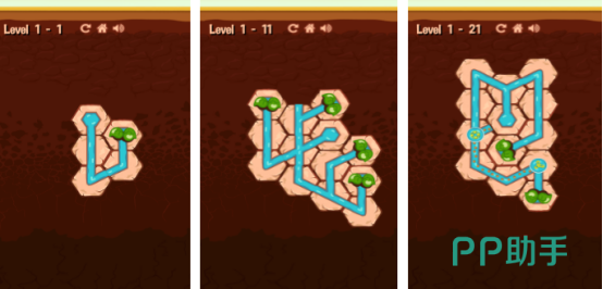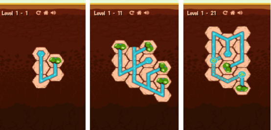 采用极简清新的视觉风格,关卡由六边形网格单元构成,每个单元支持90度精准旋转。地图布局随进度逐步复杂化,需综合判断地形约束、水源流向与终点位置,在倒计时内完成无断点、无泄漏的连通路径。每一次尝试均需调动观察力、预判力与试错策略,强化短期记忆与动态调整能力。