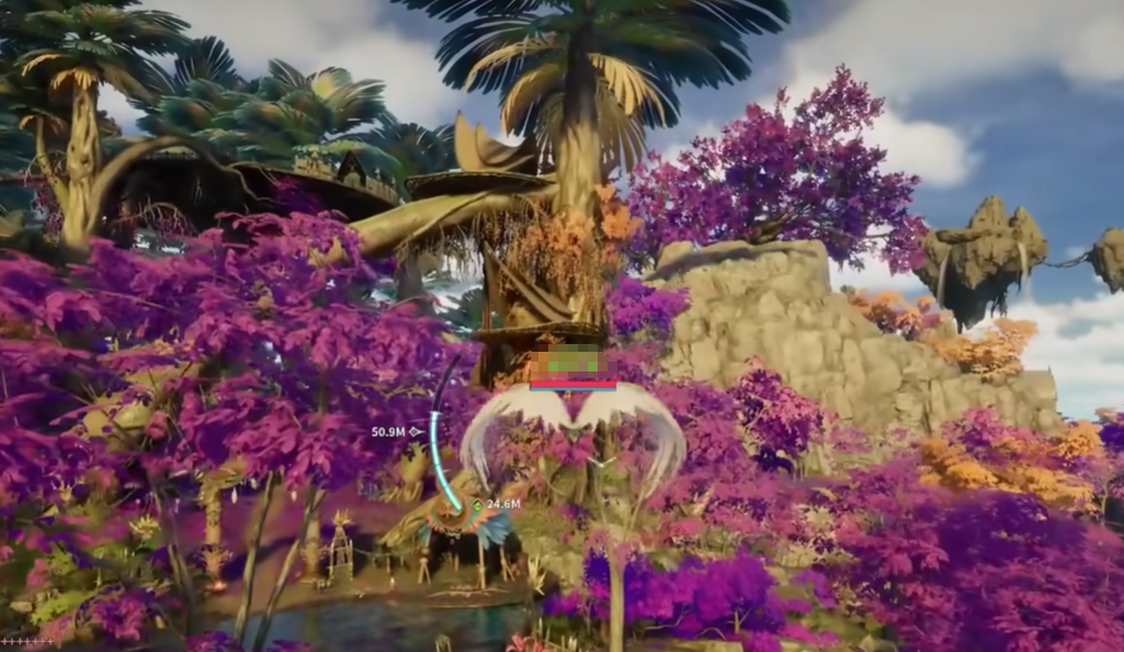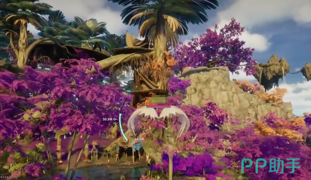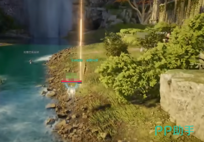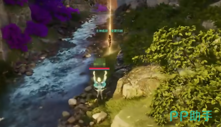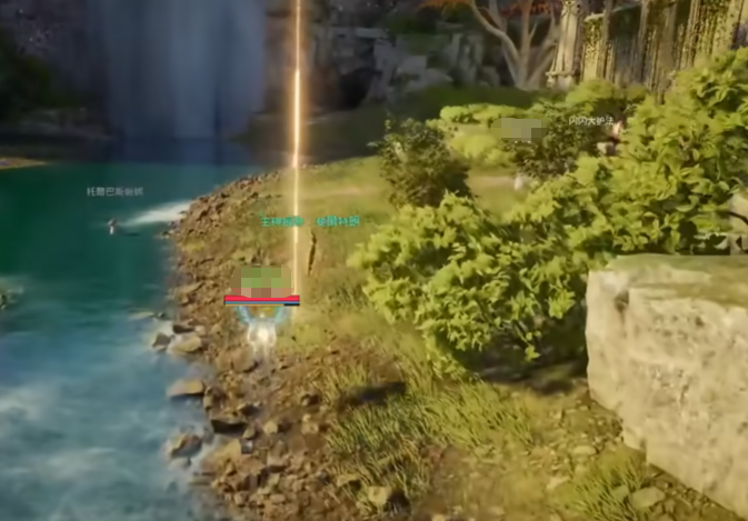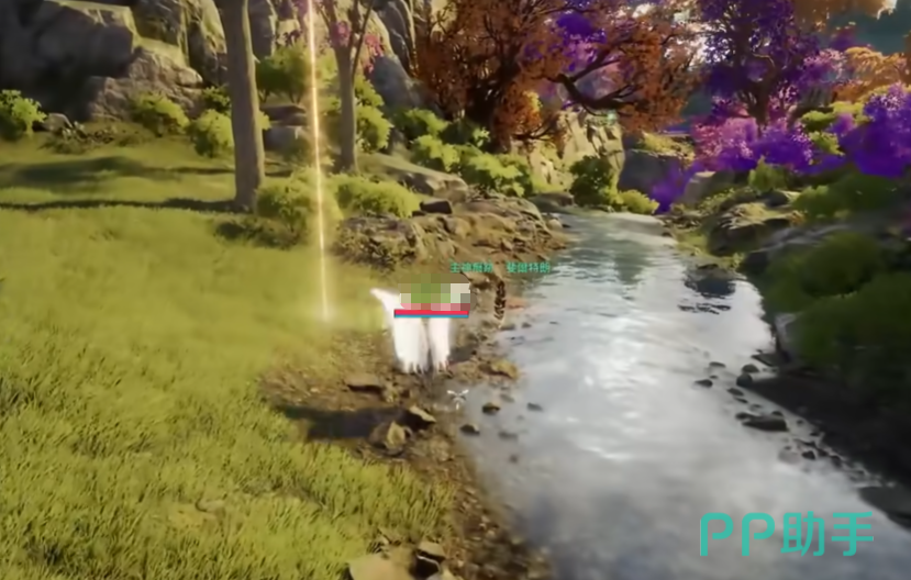 5、完成前四枚收集后,打开大地图定位森林西缘外围带,降落至西北侧河岸线,沿水流向北缓步移动,第五枚羽毛呈漂浮态静止于水面正上方半米处。
