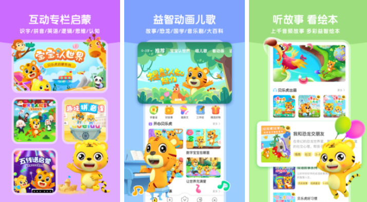专为学龄前儿童设计的音乐启蒙类应用,以原创儿歌为核心内容载体,融合动画播放、跟唱练习、节奏互动等多元形式。主角小老虎贯穿全程,营造亲切陪伴感;内置超200首原创儿歌及配套绘本动画,BGM风格轻快活泼,界面采用柔和低饱和配色,有效降低视觉疲劳,契合幼儿认知发展规律。