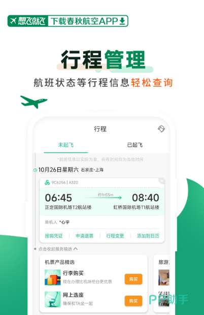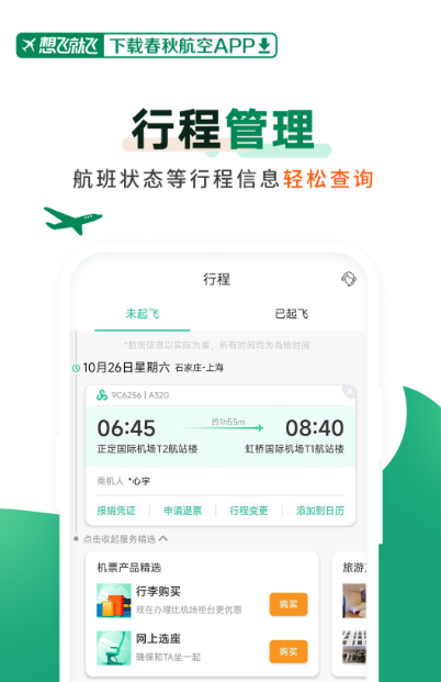 软件属于很简洁实用的类型,可买票可退改,网上值机选座功能一目了然,点开就能操作。还能根据自己的需求去自由增购行李额度,不用多花冤枉钱,性价比很高。会提前提醒值机时间和航班动态等信息,避免你误机。