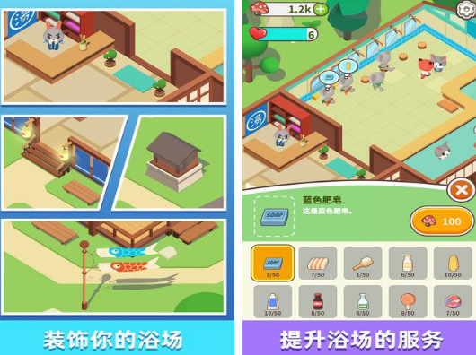 置身于卡通的森林环境当中,以经营着森林浴场为主要题材,里面的人物也是以各种可爱的小动物为主。为了能够使自己成为一名合格的浴场经营者,不仅要对整个浴场的环境进行装饰,还要提升相应的服务,升级洗浴设备。只有将浴场建得非常漂亮,才能够吸引森林当中的可爱小动物,以此来获得相应的收入,给大家带来非常治愈又烧脑的体验。