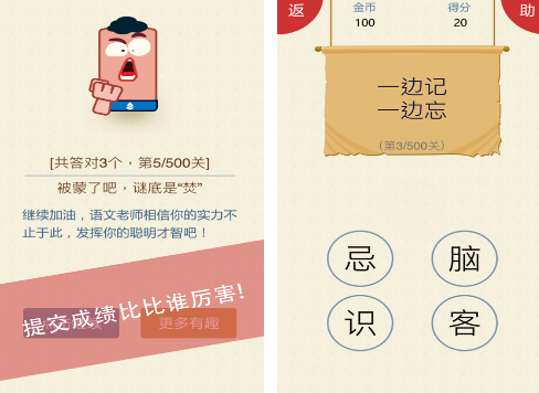 游戏涵盖了超多的关卡,也有我国人们都比较喜欢的文字游戏为主,只不过有将文字当中所具备的各种方式利用题目的方式展现出来,你需要在每次开启游戏以后,认真的了解每一个关卡当中题目的要求,回答的正确率越高,玩家所获得的金币也会越丰富,更支持与好友来一场智慧之间的比拼,全程都充满着欢乐。
