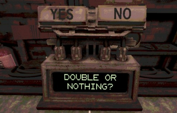 游戏最大的特点,就是把传统的俄罗斯轮盘,变成了一个回合制的对抗玩法。霰弹枪里装着实弹和空包弹两种子弹,红色的是实弹会造成伤害,黑色的是空包弹打中没事。每次轮到玩家的时候,可以选择把枪对准自己或者对准对手,这个选择就成了游戏的重点。如果选择对准自己开枪结果是空包弹,就能继续下一轮操作,相当于多了一次机会。但要是实弹的话,就会受到伤害,然后操作权就转到对方手里。