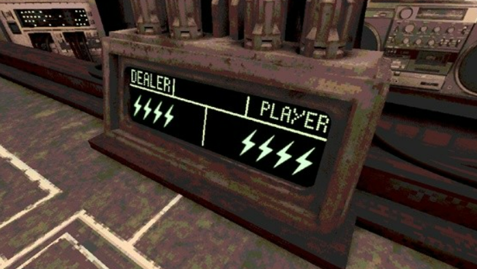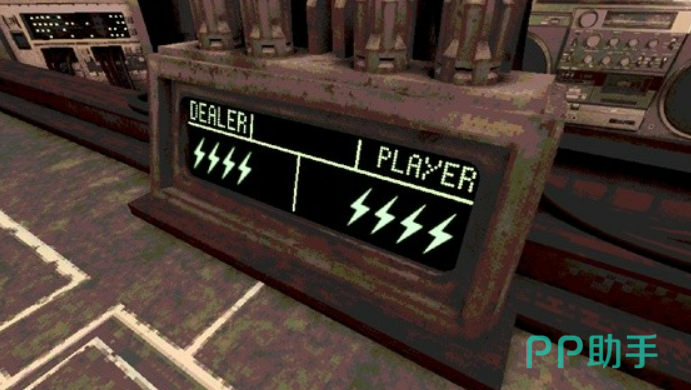 生命值的设定也比较有意思。游戏里用除颤仪的电量,来代表双方的血量,电量耗尽就输了。不过这里有个特殊的机制,当任何一方的电量,降到某个危险线以下的时候,会触发闸刀效果。一旦触发了这个机制,除颤仪的线路就会被切断,这时候无论用什么道具,都没法恢复电量了,下一发实弹就能直接结束战斗。这个设定让游戏后期变得特别紧张,因为双方都知道一个失误就可能全盘皆输。