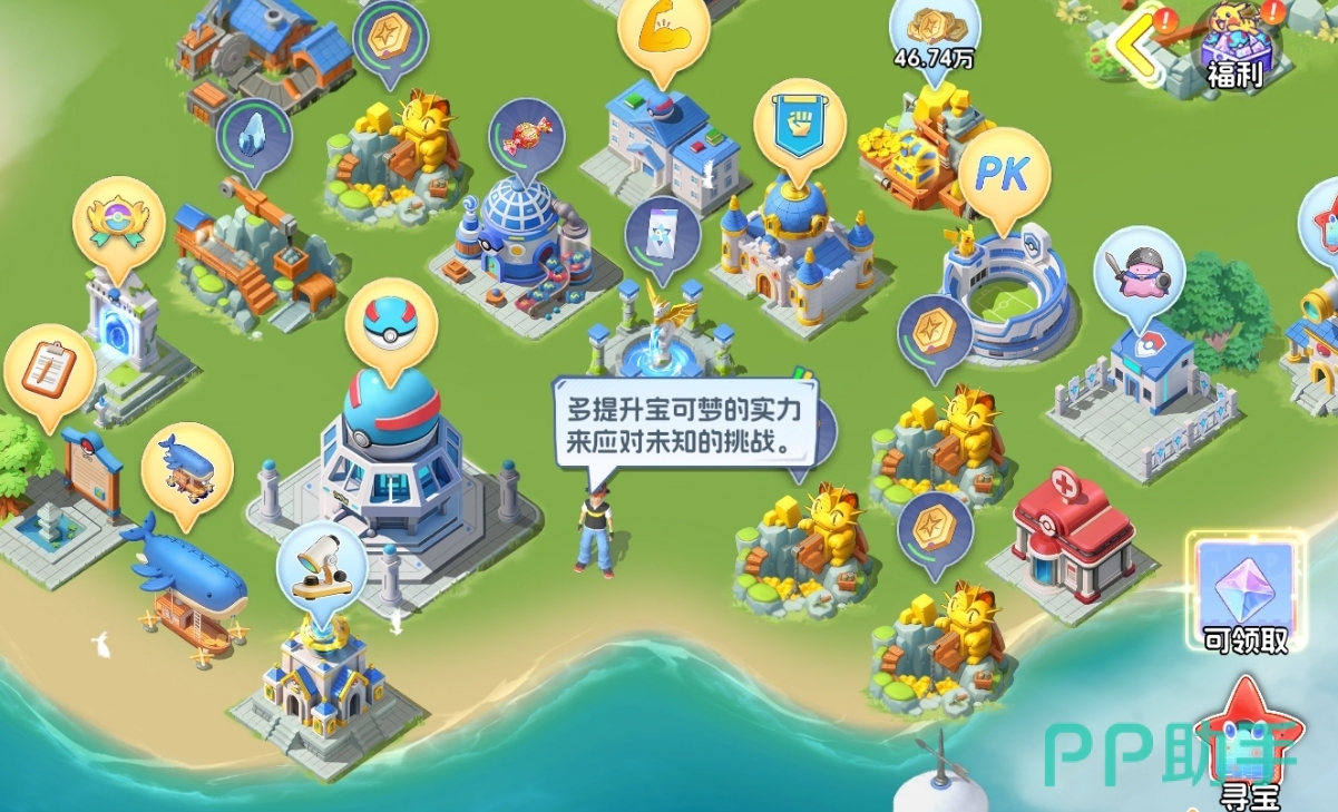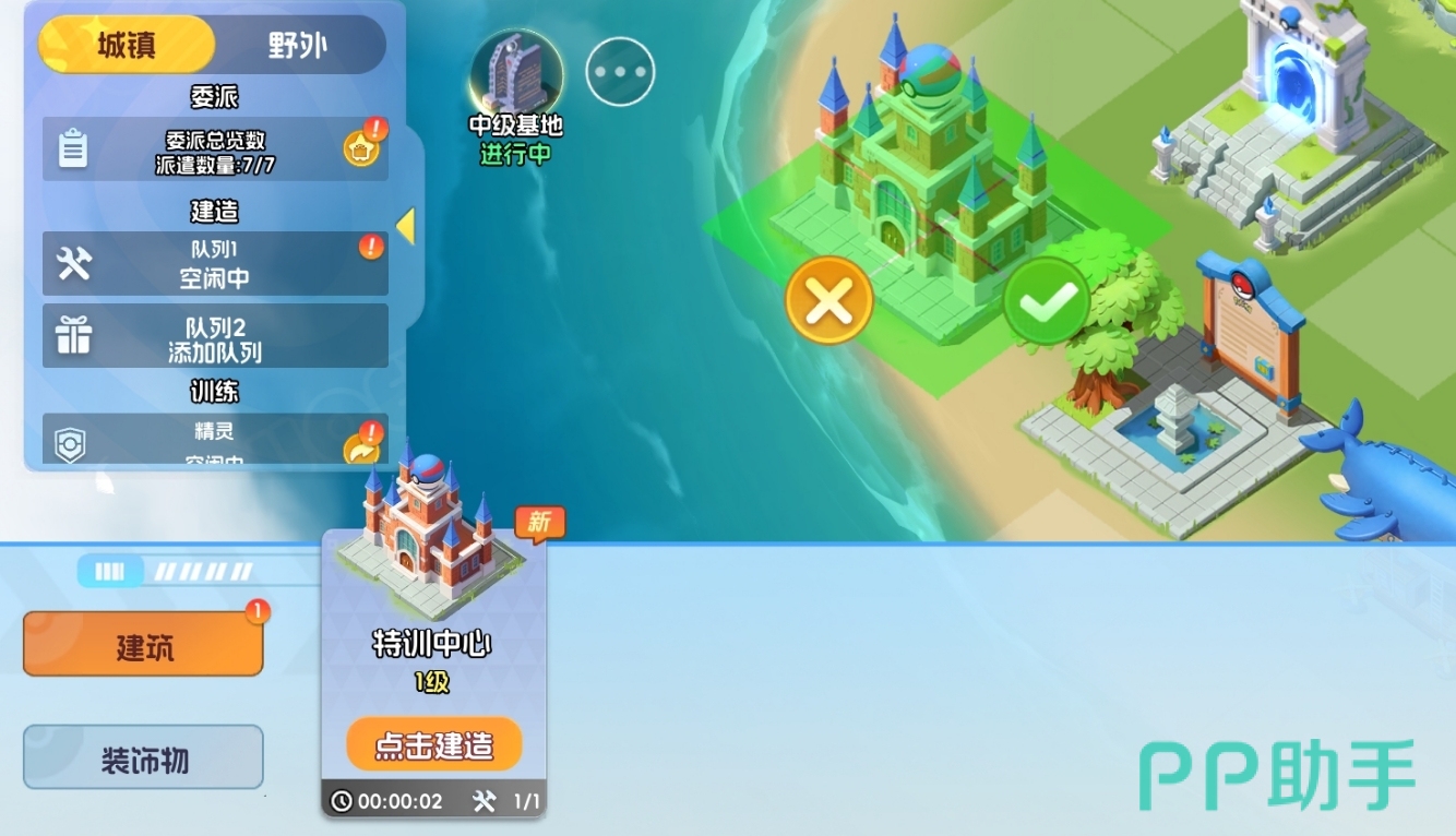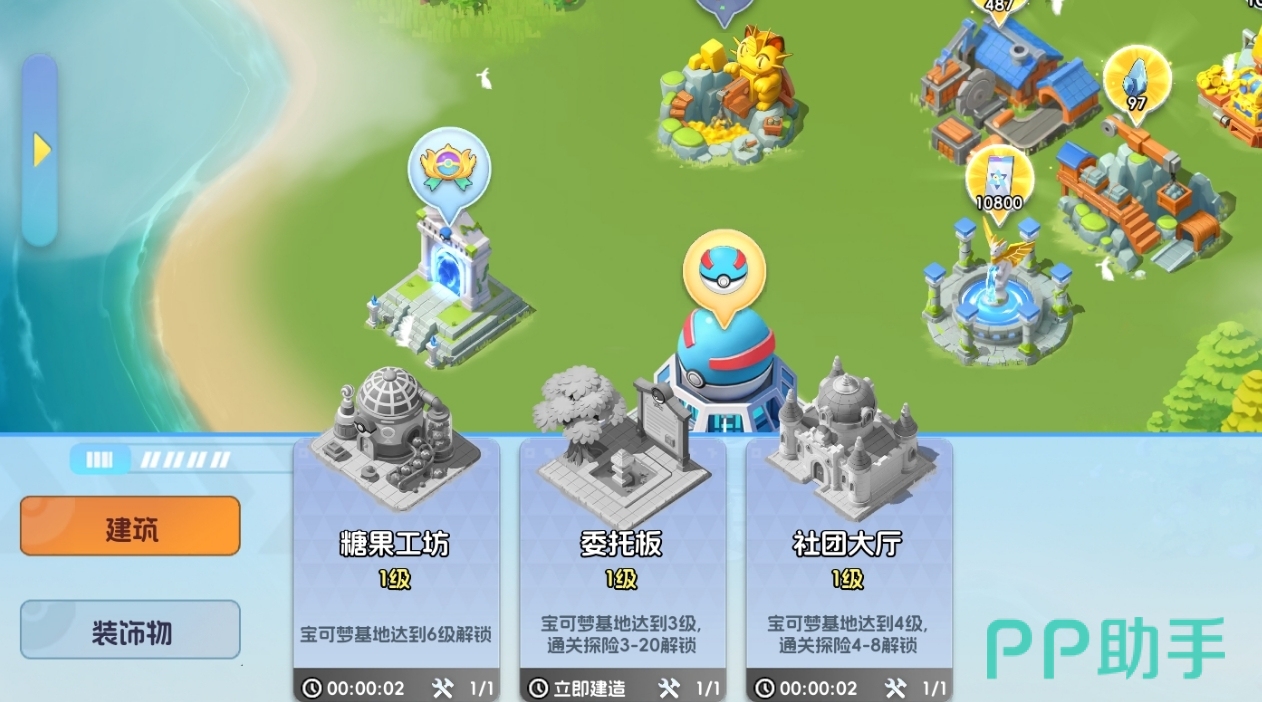基地建筑按用途划分为三大类型:功能建筑、资源建筑与风景建筑。功能建筑如社团大厅、对战竞技场、战斗学院等,是推进主线进度、开启社交协作与PVP玩法的关键节点;资源建筑承担金币、经验药剂、训练材料等核心资源的稳定产出任务,支持宝可梦培养体系运转,并可通过指派宝可梦驻守提升产出效率;风景建筑则纯粹服务于基地个性化呈现,不提供任何属性加成或玩法拓展。建议建造顺序为:优先部署功能建筑以打通内容链路,其次补足资源产能,待资源储备充足后再投入风景类装饰。