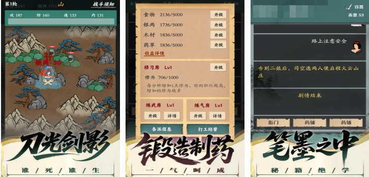 本作是成功将沙盒元素和武侠世界观结合的经典佳作,可自行在沙盒世界不断冒险或者锻造装备,“侠之大者”的概念在本作中呈现的淋漓尽致,水墨的怀旧背景也跟沙盒江湖的主题交相融合,超多的随机事件和NPC可以随意邂逅,秘境冒险、功法强化这些有趣的玩法耐玩性也得到了增加。
