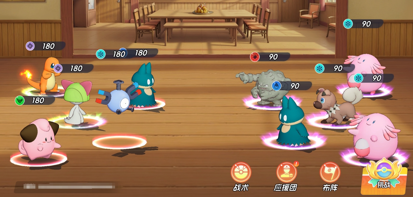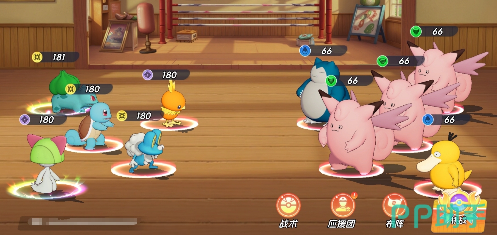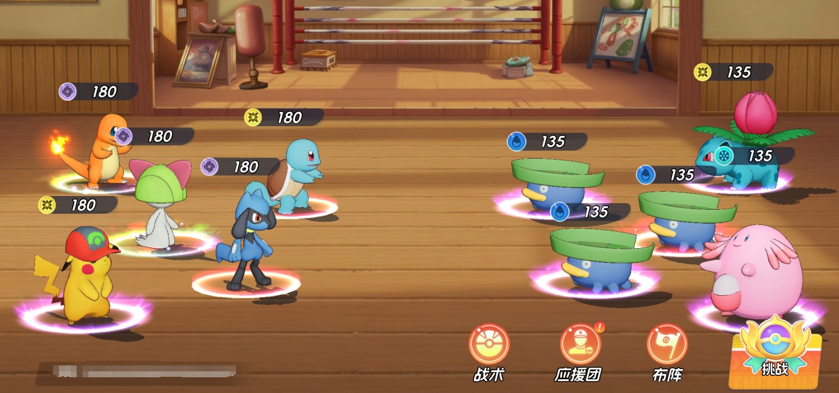 由帽子皮卡丘、皮卡丘、炭小侍、皮宝宝、小福蛋组成。该组合聚焦高频群攻与持续控场:两位皮卡丘共享电系核心机制,大招联动可触发高额范围伤害;小福蛋与皮宝宝构成双辅助轴心,提供群体眩晕+稳定治疗,保障输出环境;炭小侍担任前排主力,兼具承伤能力与可观单体输出,亦可依实际需求替换为其他高耐久防御型宝可梦。