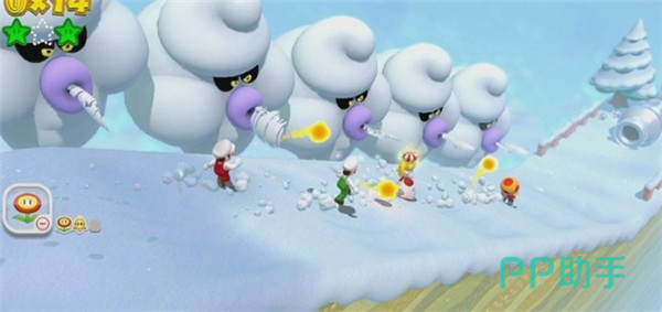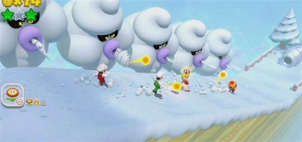 提供马里奥、路易吉、奇诺比奥、桃花公主四位可选角色,各自拥有差异化移动参数与技能特性。炮弹盒赋予远程打击能力,灯盒激活隐藏路径。开放地图结构内嵌多重秘密区域,除主线冒险外,还包含马车竞速、水下潜行等差异化玩法模块。