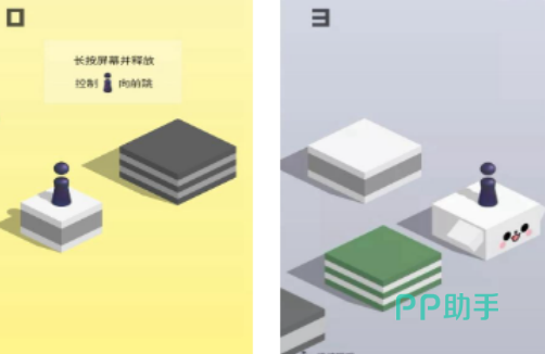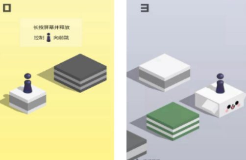 只要在小程序里翻找一下,点进去就能直接玩。游戏的操作就是对着屏幕点一下再松开,就能让小棋子跳起来往前冲。小棋子跳出去的力道大小,全看按住屏幕的时间有多久,按得久跳得远,按得短跳得近。游戏里的地图是由立体方块组成的平面样式,等着大家跳过去探索。规则还设置了排行榜可以和其他人比拼。