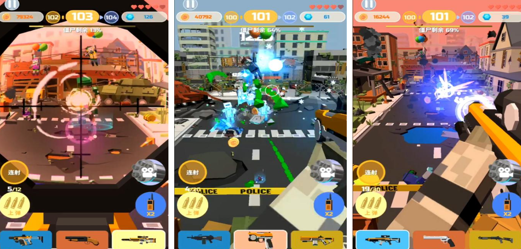 《僵尸射手》把硬核的动作扫射玩法直接放入游戏中,玩家要负责武器改装到走位拉扯的整个过程,在危机四伏、满是残骸的封锁区域里,面对形态各异的变异集群时,需要瞄准准心的变化反馈,用手指点击精准地完成弹药的倾泻或者致命的爆头。去掉了繁冗拖沓的培养系统,只留下钻研各种口径枪械后坐力规律的过程,然后通过不断的试错解锁破坏力更强的重型火炮。