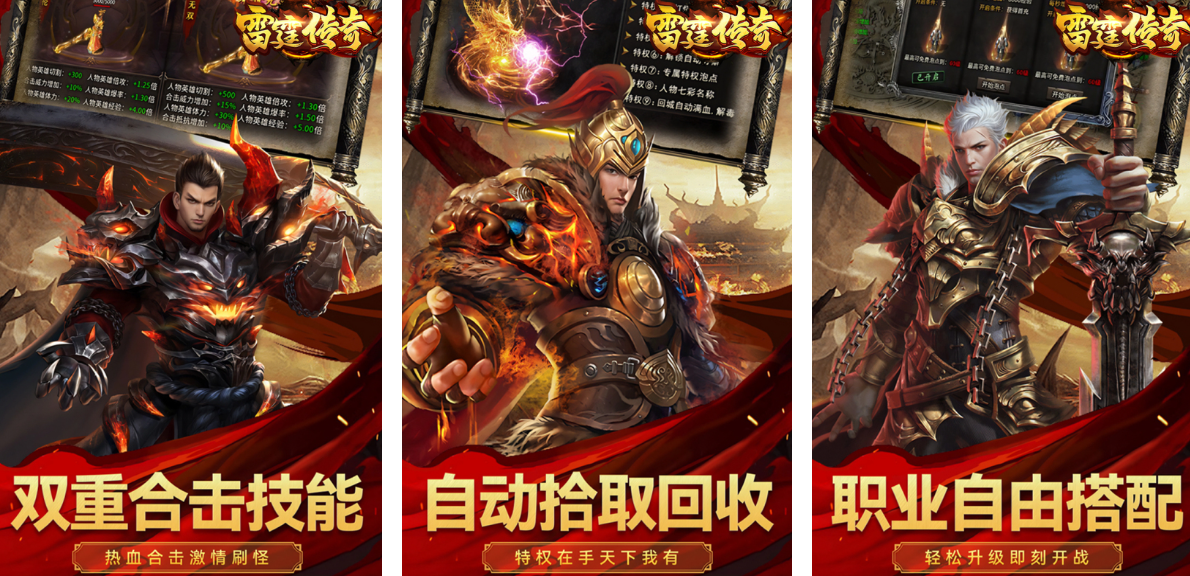 《雷霆传奇》把极爽的雷霆重击效果和高倍率掉宝还原得很好,玩家扮演的是一个打算在群魔乱舞的暗黑森林中杀出重围的勇士,在布满变异神兽、邪恶触龙神、矿区幽灵的战斗地段展开一场关于战力压制和红名爆装的较量。游戏上手非常快,玩家只需要点点屏幕就能指挥角色手中的裁决之杖锁定远处的赤月恶魔,并利用那些具有眩晕效果的雷霆特戒去帮玩家稳住战局。当被敌对行会围攻的时候,玩家就必须依靠极其精准的烈火剑法调配,保证自家输出能够覆盖住对方法师团。