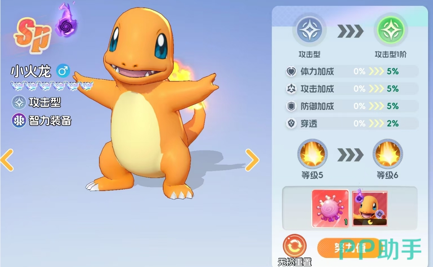 养成层面,超级喷火龙具备天然优势。由于MEGA进化本身已消耗大量资源,初始练度较高,后续只需持续升阶至当前版本品阶上限即可完成基础成型。进阶强化路径包括:在锻炼系统中使用增强剂提升力量(影响体力)、技巧(影响攻速)、耐力(影响防御)三项基础属性;在努力值系统中消耗宝可病毒定向强化对应能力;同时不可忽略招式精通升级、等级提升及MEGA进化专属升阶等常规成长模块。