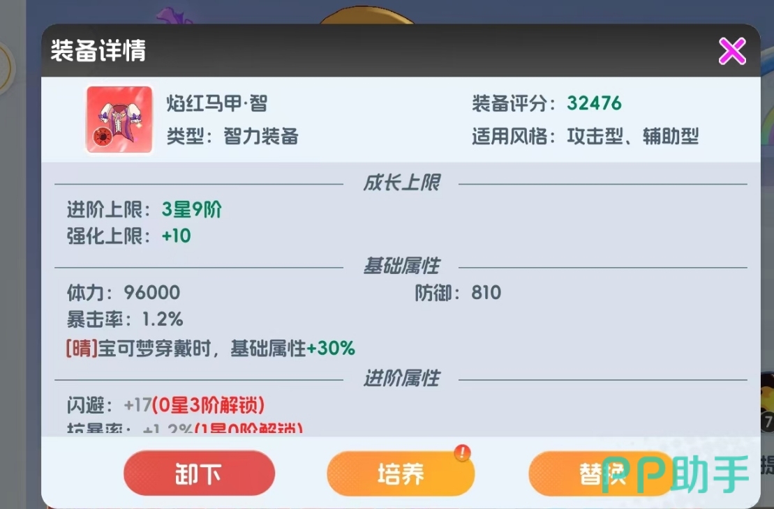 配装策略上,应紧扣其法术爆发定位。装备类型优先选择智力加成类,且推荐搭载幻阵营或晴阵营属性加成词条——因超级喷火龙兼具幻、晴双阵营身份,可同时激活两类阵营效果,显著放大属性收益。武器主属性建议优先洗练吸血、法术伤害加深、忽视异常抗性、暴击率或攻击加成;若资源充足,可使用高级洗练石尝试获取小火龙专属特效词条,进一步释放机制上限。