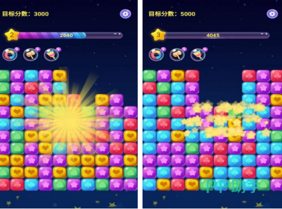 充满着炫酷画面以及完美特效的消除手游,里面涵盖各种类型的星星,无论是爱心或者是五角星等各种各样的形状,你都需要在点击的时候,确保是同一个颜色的,这样点击以后就能消除,并获得相应的分数。游戏还有丰富的道具,无论是任何道具,都可以帮助大家在挑战高分的时候更顺利。每次消除星星数量越多的情况下,更能获得高分。