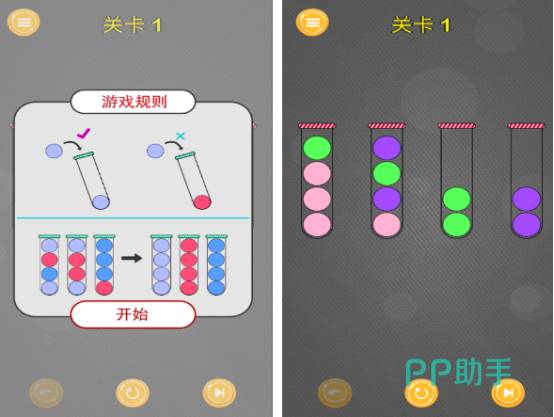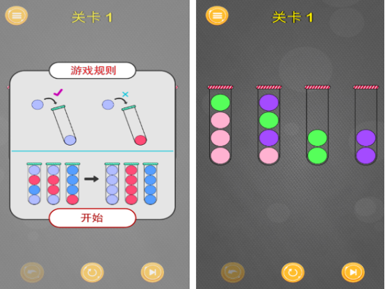 游戏当中拥有着各种颜色的弹跳球,主要就是在轻松有趣的氛围当中,对整个跳跳球进行分类。主要就是有里面的弹跳球会被放置在不同的试管当中,由于里面的试管只能够放同一个颜色才能够过关,所以必须要大家利用简单的操作方法,根据游戏的规则,将不属于一个颜色的球球移动另一个试管,直到每一个试管当中只有一个颜色的弹跳球。