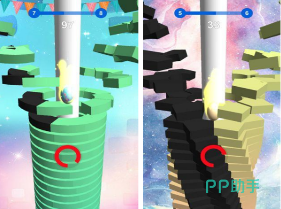 将会让大家在一个可以旋转的螺旋平台中,通过控制着跳跳球,不断穿越平台,避免碰到黑色块的这种情况就可以增加游戏的分数,但如果在闯关的过程中遇到黑色块的话,那么球球就没有办法继续完成跳跃,而是会降落到底部,影响玩家的分数。在玩的时不仅要根据砖块的颜色,点击屏幕,还要掌握相应的时机,有超多可爱的球球可以选择。