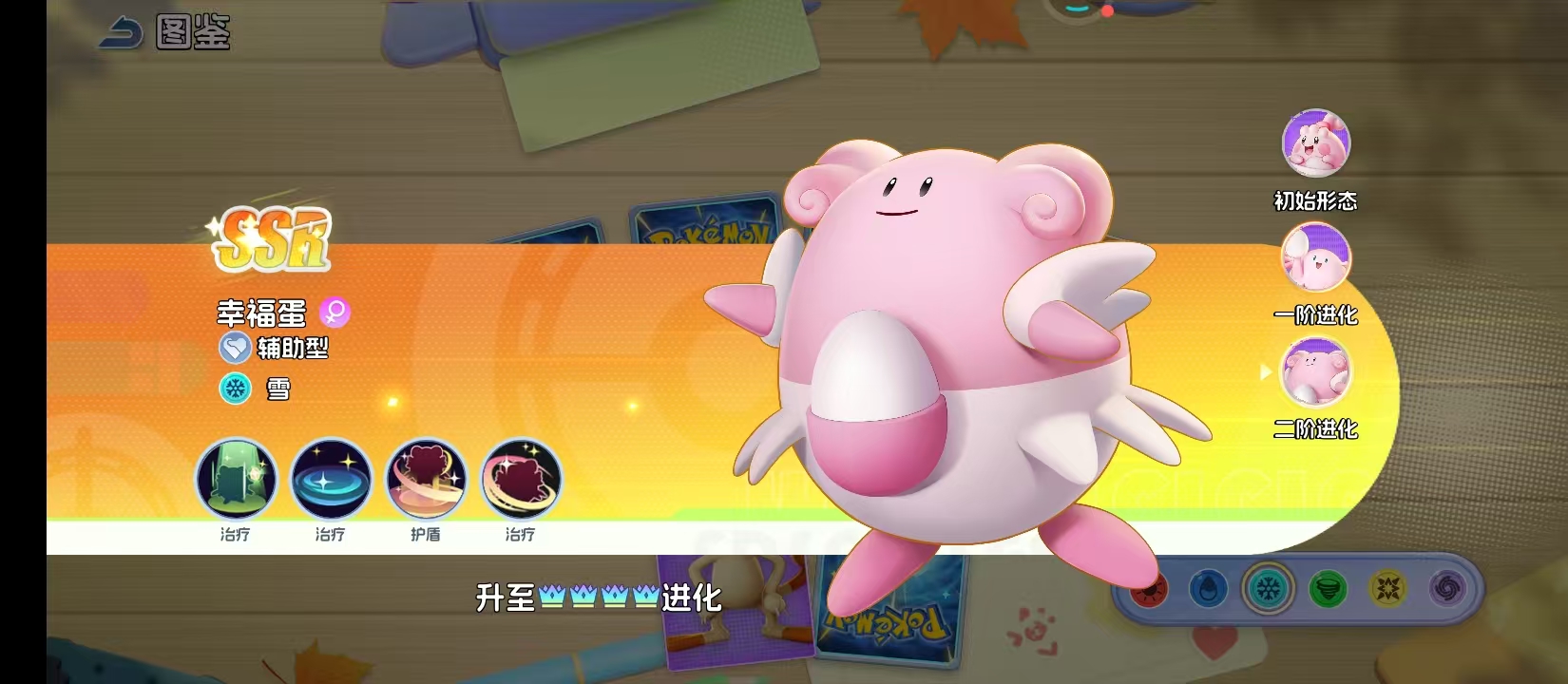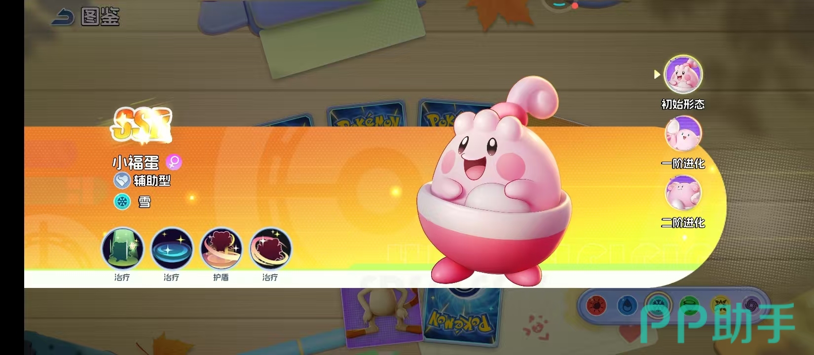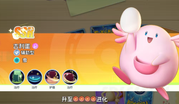 在进阶的道路上,小福蛋的潜力也是不可身侧的,开始只不过是小福蛋,在进阶之后就变成吉利蛋,最后就变成幸福蛋。而每一次的进阶技能都会有所提升,例如生蛋的技能会从一级变成5级,恢复效果也会从500%的攻击力迅速的提升到800%。同时进阶解锁的护盾技能可以给团队带来关键的减伤屏障,能进一步的提升团队保护能力。在粉色的外壳下,藏着的其实就是一种纯粹的善意,小福蛋总是会第一时间出现,可以去保护每一个队友。所以这才是一个值得大家选择的宝可梦。