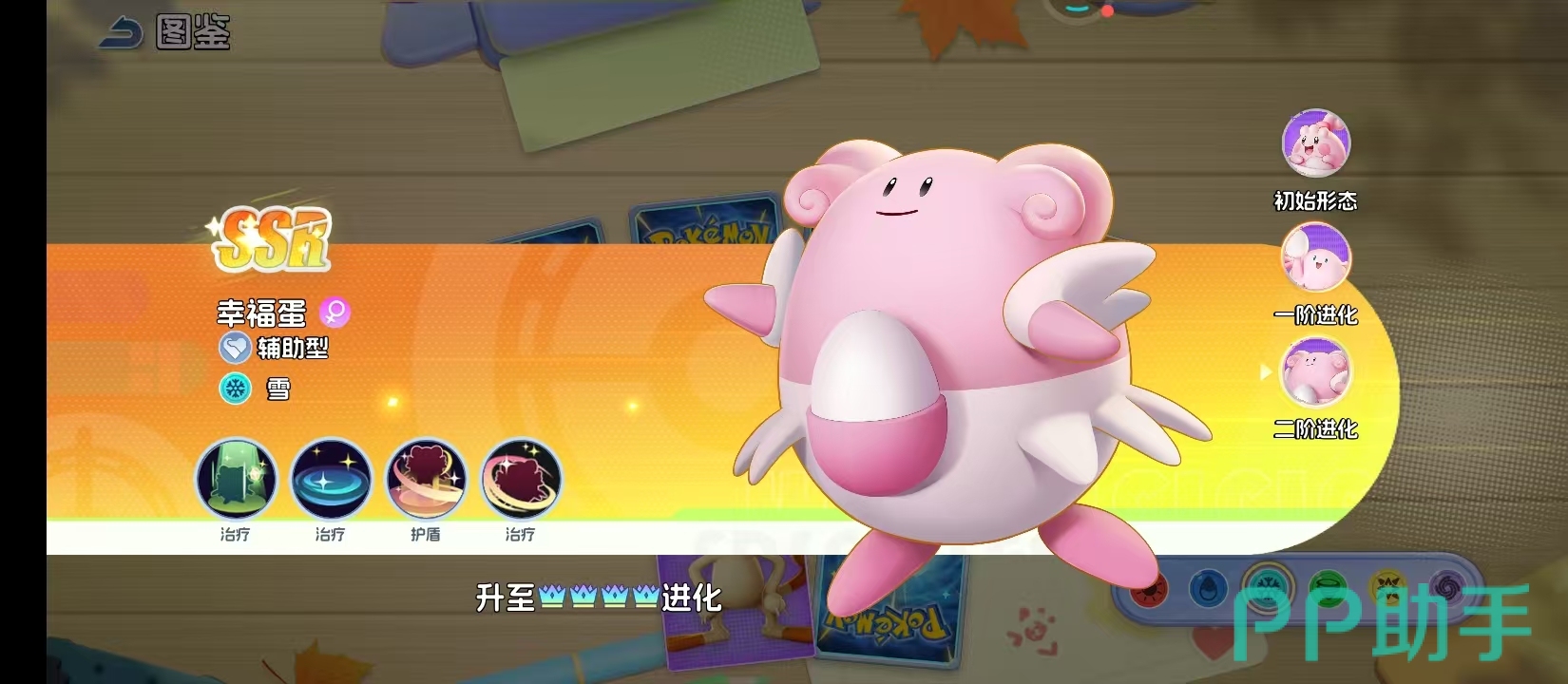 小福蛋作为一个辅助型的血系宝可梦核心的魅力就在于将力量和温柔结合在一起。在进化的过程中,每一次的进化都可以让治愈的能力得到有效提升,而一旦进化成幸福蛋时,那标志性的技能就可以爆发出更出色的能量。不仅可以给生命值最低的队友瞬间回复12%的最大生命值,还能够发射9颗治愈之蛋,累计就可以获得800%的攻击力治疗量。每一颗蛋都会承载着30点怒气回复,还有30%攻速提升,让队友在绝境中照样也会拥有斗志。