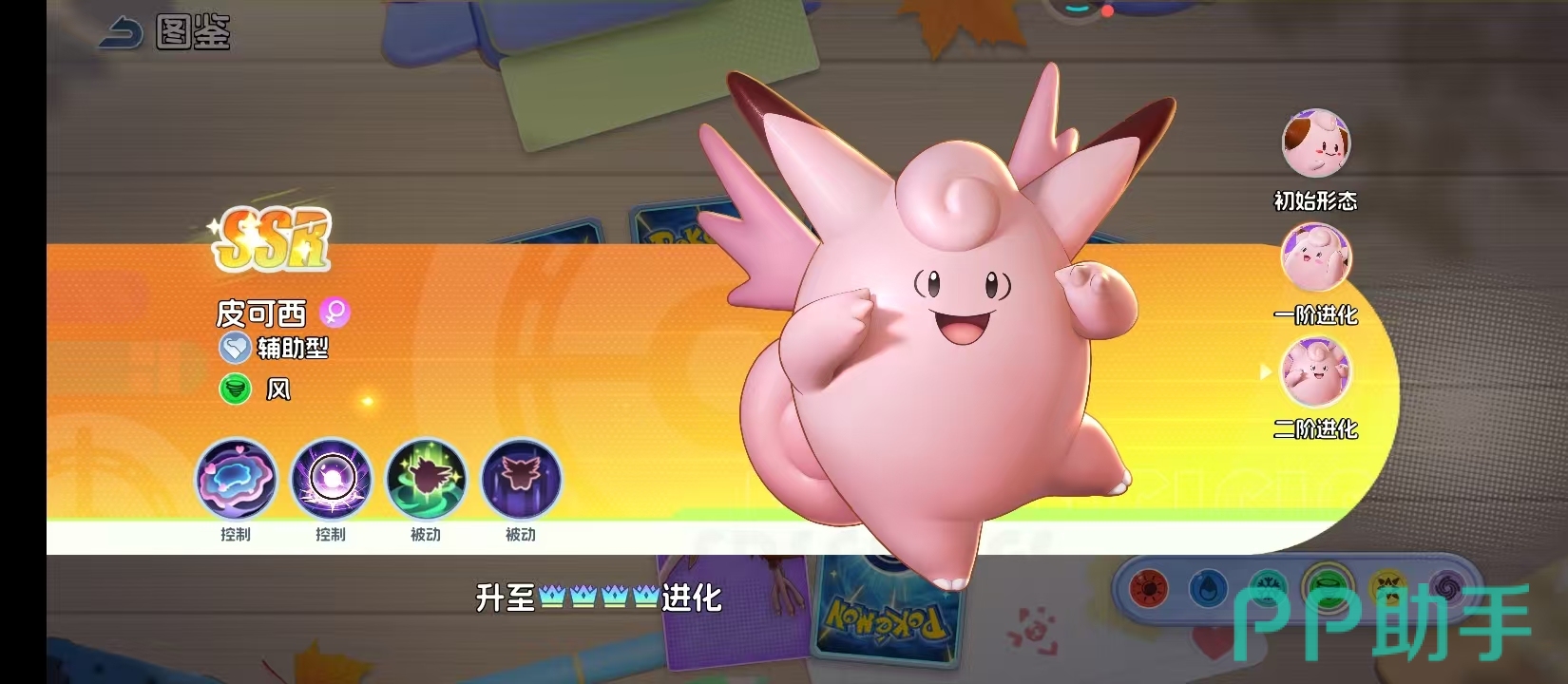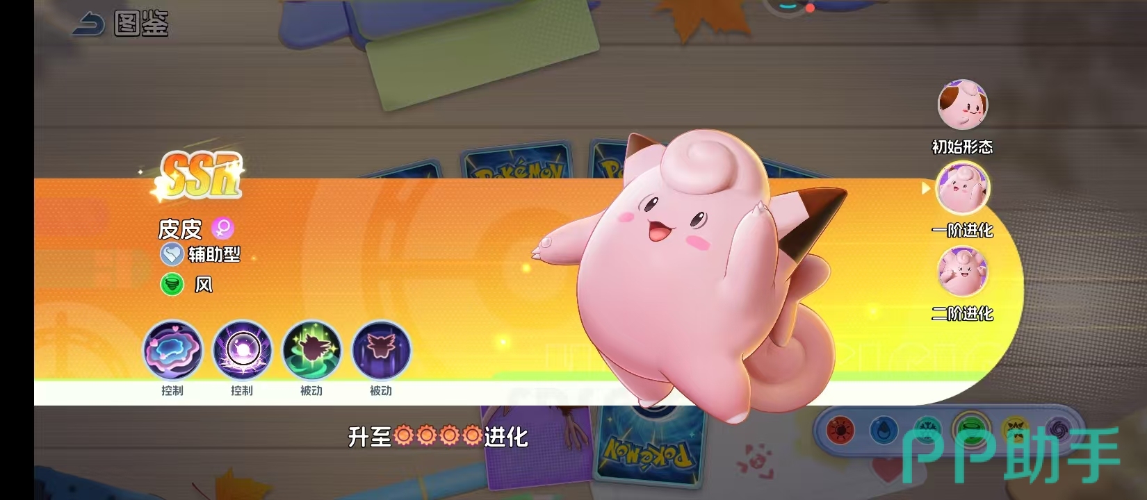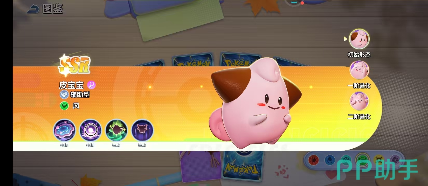 皮宝宝就是初始的形态,拥有着圆滚滚的粉色身躯,在队伍中也是一个很有亲和力的存在。作为风属性的辅助型宝可梦,技能的设计,早就已经拥有控制能力和辅助能力。两个主动控制技能,还有被动技能的组合,就能让他在一开始就给队友带来关键的支援技能。虽然此时他还有一些稚嫩,但是未来就会成为团队中的核心。