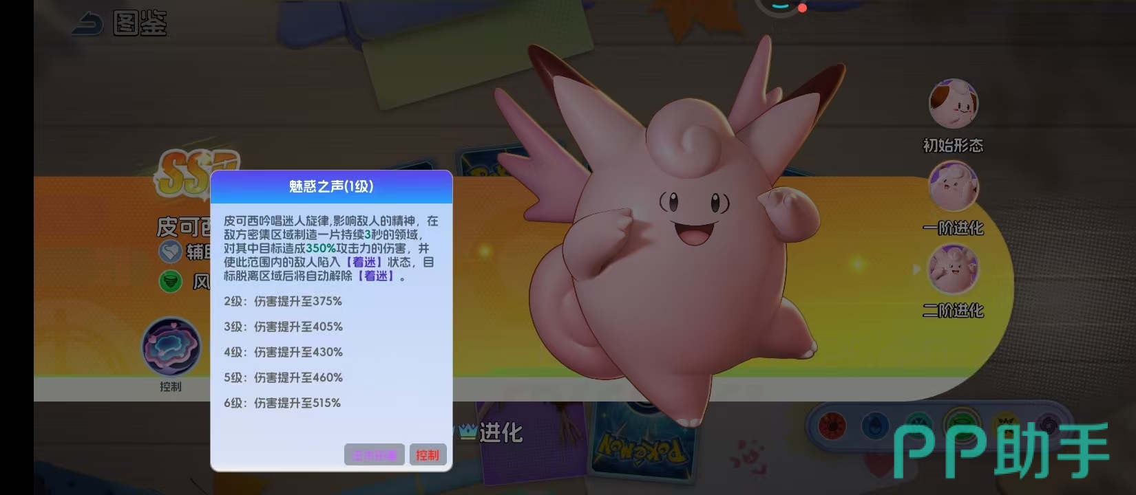 皮皮完成最终的进化,就会诞生皮可西。背后就会有一对粉色的翅膀,可以守护队友,作为一个完全体,皮可西的辅助能力就会进入到巅峰的状态。尤其是核心技能魅惑之声,就可以让他成为团队中的绝对焦点,这就是皮可西的灵魂技能。通过释放技能,在敌方密集区间就可以制造持续三秒的领域,这片领域不仅可以针对目标造成高额伤害,还能使得范围内的敌人陷入到着迷的状态。让他们在很短的时间内失去行动能力。成为队友集火攻击的目标,目标一旦在脱离领域之后,就可以自动解除着迷的效果。让皮可西的控制更加的精准,拥有更多的策略性。