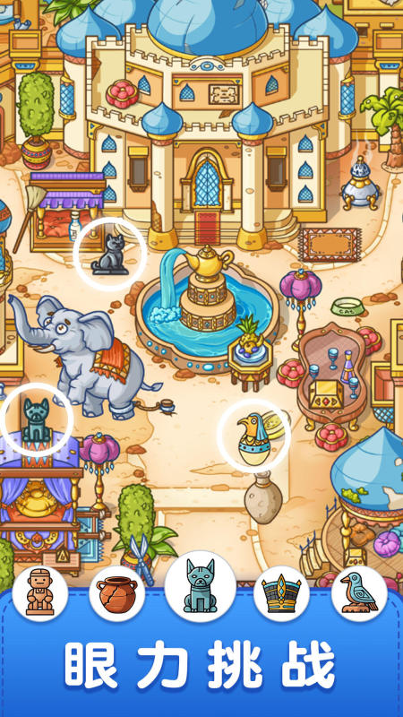 面向入门玩家设计,节奏明快、操作简洁。游戏划分为多个独立章节,每章对应独特主题场景(如古堡、沙漠、冰川等),通关条件围绕指定物品收集展开。内建智能提示系统,点击即可获得阶段性指引,降低挫败感,同时保留图鉴收集与成就达成机制。