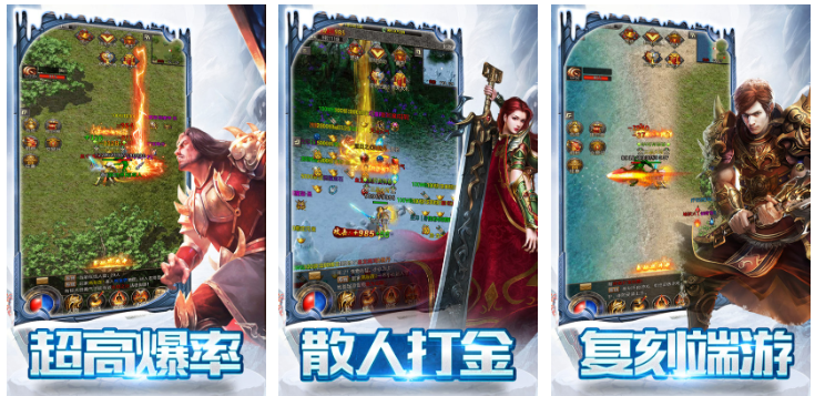本作以单职业架构为核心,取消传统三职限制,却大幅拓展技能学习维度。角色可掌握多系主动/被动技能,形成个性化战斗风格;爆装率显著提升,神装、技能书等稀有道具获取效率更高。美术延续玛法大陆怀旧基调,场景建模精细,粒子特效饱满,配合实时多人PK与跨服竞技系统,兼具情怀感与竞技深度。