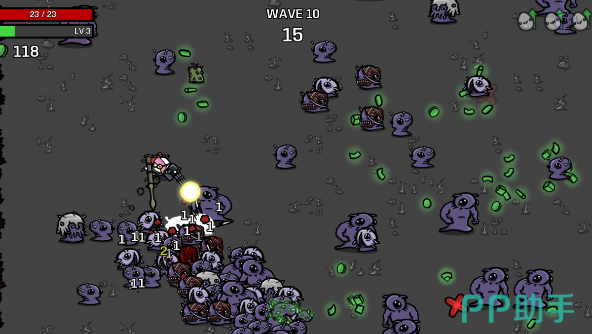 源自Steam热门Roguelike射击游戏的移动端版本,主打快节奏“割草式”清屏对抗。玩家操控拟人化小土豆角色,通过随机掉落武器、技能模块与绿色能量点数实现即时成长。每局流程短平快,肉鸽构筑自由度高,外星敌人波次设计富有策略层次,配合夸张弹道与爽快爆破反馈,兼具解压性与重复可玩性,是轻量化移植中少见的系统完整性范例。