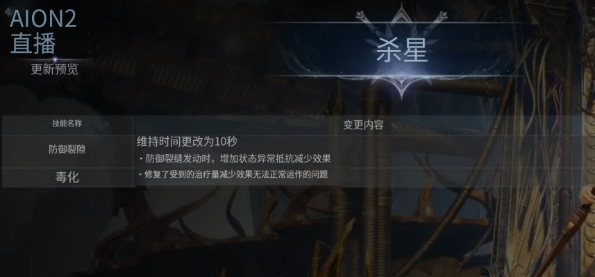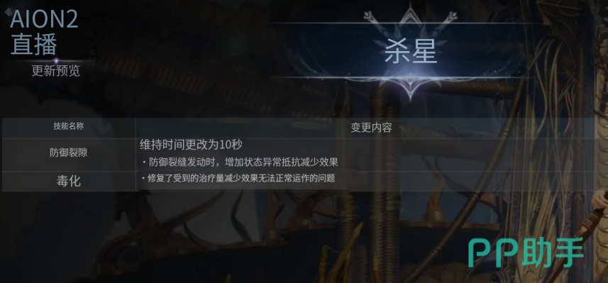 3、杀星:防御裂隙技能新增异常状态抗性加成;修复此前存在的治疗量异常衰减问题。本次调整属稳定性维护,无强度层面重大变更。