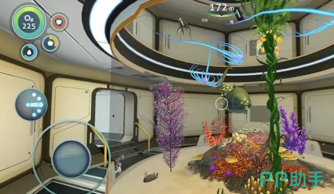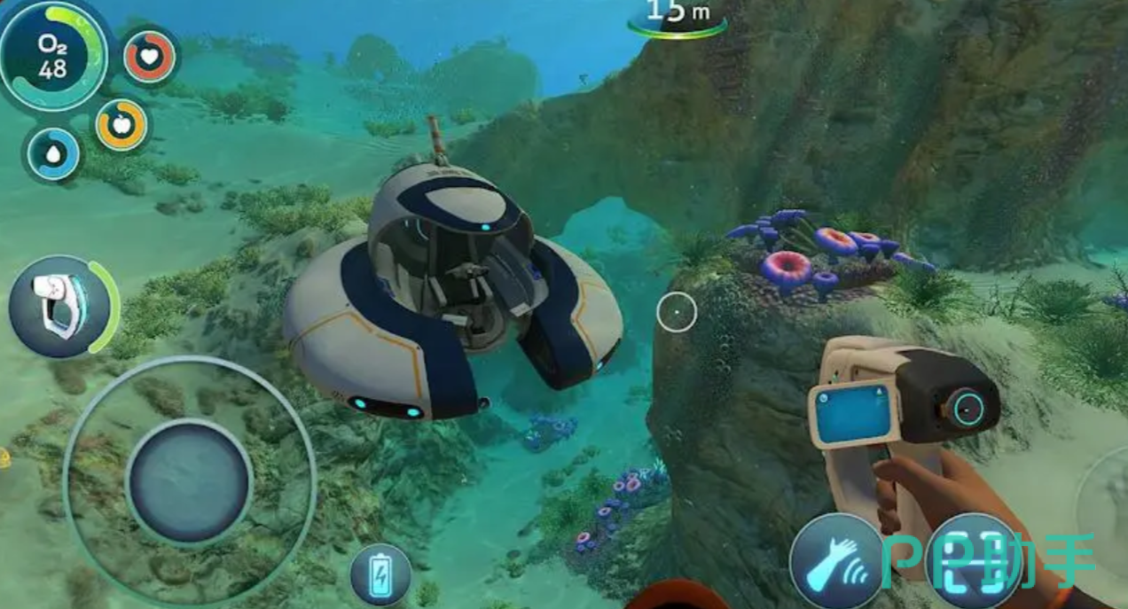 游戏构建了层次分明的立体海洋世界:从阳光穿透的珊瑚浅滩、幽蓝静谧的中层水域,到高压低温的深渊海沟与荧光涌动的生物河流,每一区域均具备独特地貌、生态群落与环境挑战。动态生成的水生生物系统赋予世界真实呼吸感,配合基地建设、载具驾驶与工具制造,形成完整的“生存—探索—发展”闭环体验。