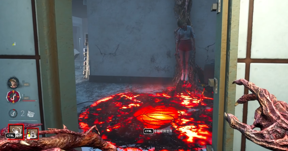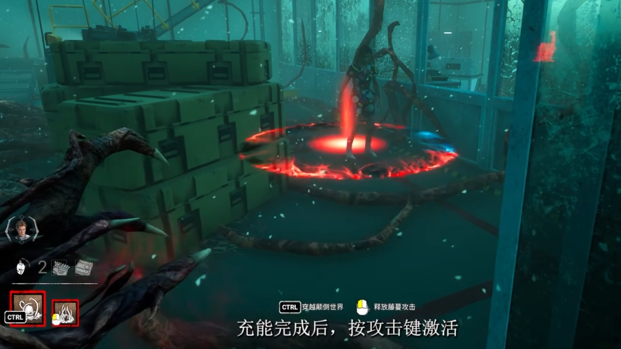 印记系统与颠倒世界转化机制是本角色的关键胜负手:单次藤蔓或地下门命中赋予1层印记,累计达4层时强制触发“世界破坏者”效果,将全场所有求生者瞬移至颠倒世界。在此维度中,维克那不再依赖印记叠加,可直接使用藤蔓造成实质伤害,大幅提升终结效率。