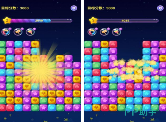 基于颜色与形状双重维度的消除类游戏,包含爱心星、五角星、菱形星等12种星体图标。规则简明:同色相邻即可消除,连消触发特效加分。道具系统含“彩虹星”(清除整行)、“闪电锤”(粉碎障碍)等,辅助突破卡关,避免挫败感,维持挑战动力。